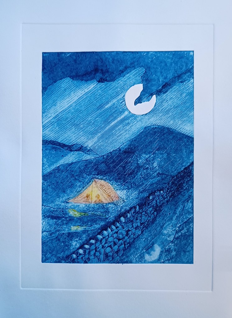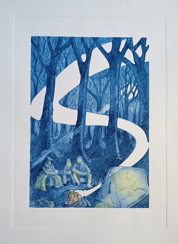 To start experimenting with Pringles collagraphs, you’ll need a few supplies. Gather some Pringles chips (emptying the contents is entirely optional!), a variety of tools for mark-making such as wire brushes, knives, compass , sandpaper, metal scribe or could splash out on dry-point needle . You need an ink preferable etching or intaglio ink . I am using Akua intaglio ink which has a long open time and is easy to clean up.