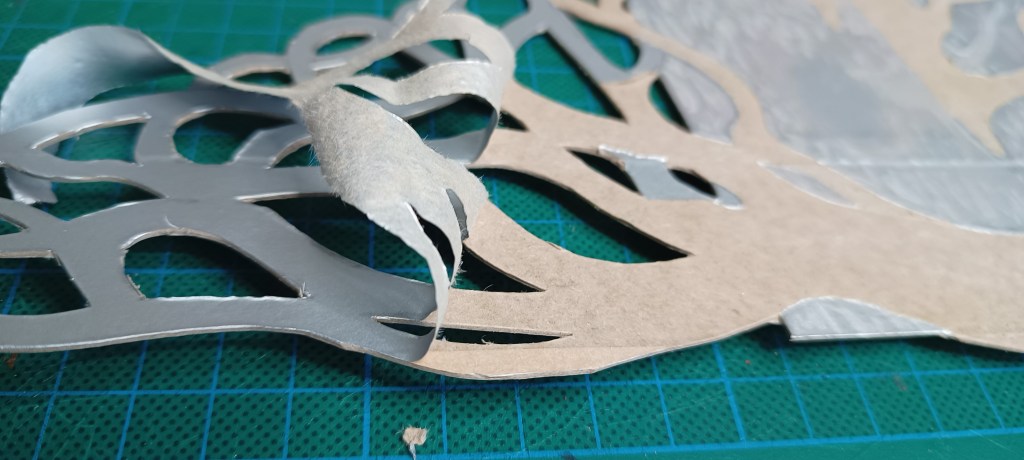 Time to pick tools if you are going to use wire brush or sandpaper I normally do this before cutting into the surface as the sliver inside may come away from the card. If you cut the silver foil to reveal the card below to create a darker section, the surface of the card is sealed so if you scratch a way more it will give a darker tone again. I don’t seal the plate as i want ink to soak the card.