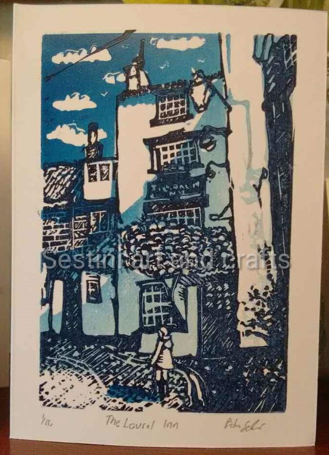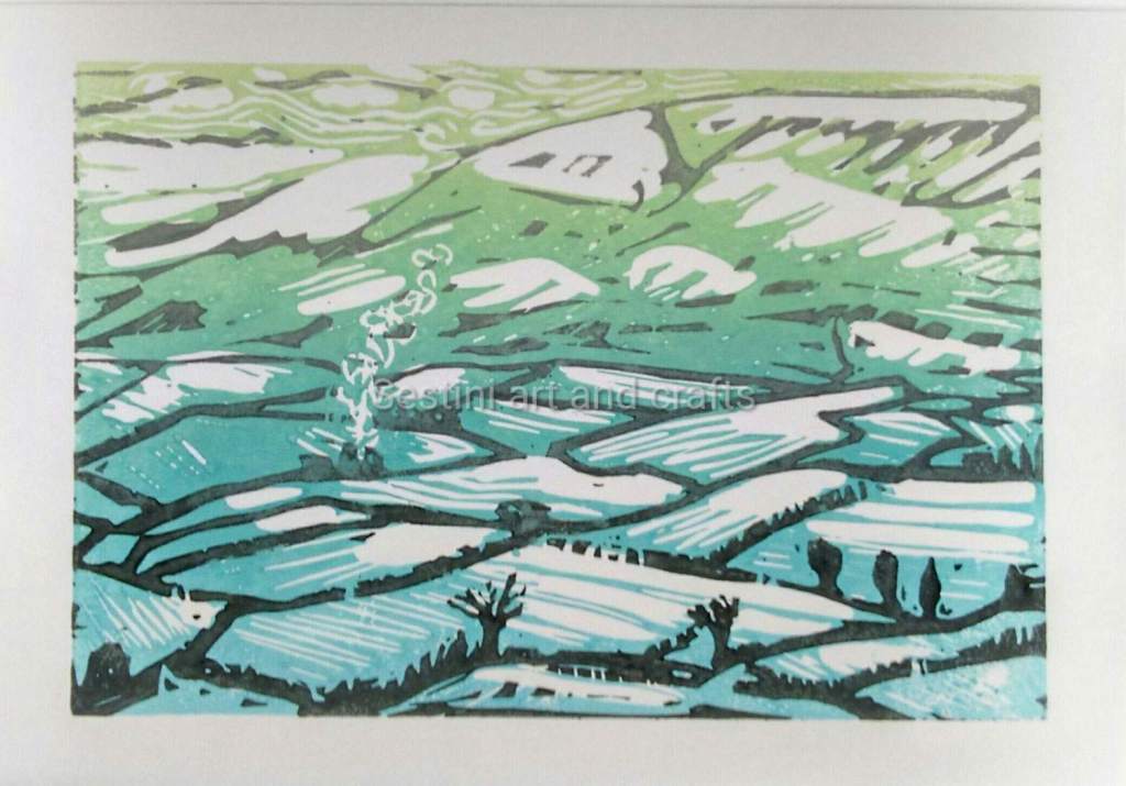 The cards are mixture lino printed using oil based ink and drypoint using soy printing ink on white print card. Rough Size 7×5 inches. Comes with matching envelope and wrapped in cellophane. Blank inside to add your own message or memory. Available at the Craft Centre & Design Gallery, City Art Gallery, The Headrow, Leeds, West Yorkshire, LS1 3AB