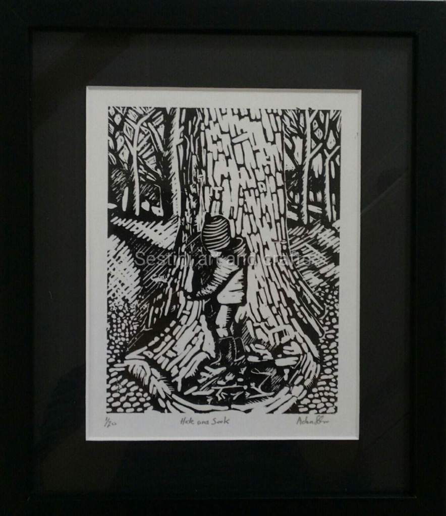 These prints are inspired by family adventurers and capturing the memory’s in print. All prints are hand drawn and cut, and are part of a small limited edition prints. Due to the hand burnished process each lino print will differ slightly and may include smudge marks. This will make your print unique. Sold unframed and not mounted. The print will be packaged in a cellophane sleeve/wrap with a hard back of cardboard to arrive safely.