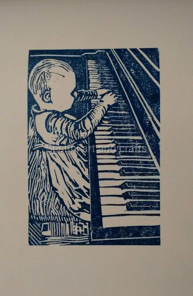 Daughter paying on the panino Printed using oil based ink on Gerstaecker 120 gsm White acid free. 8″ x 10 in paper Print size 4″ x 6″in