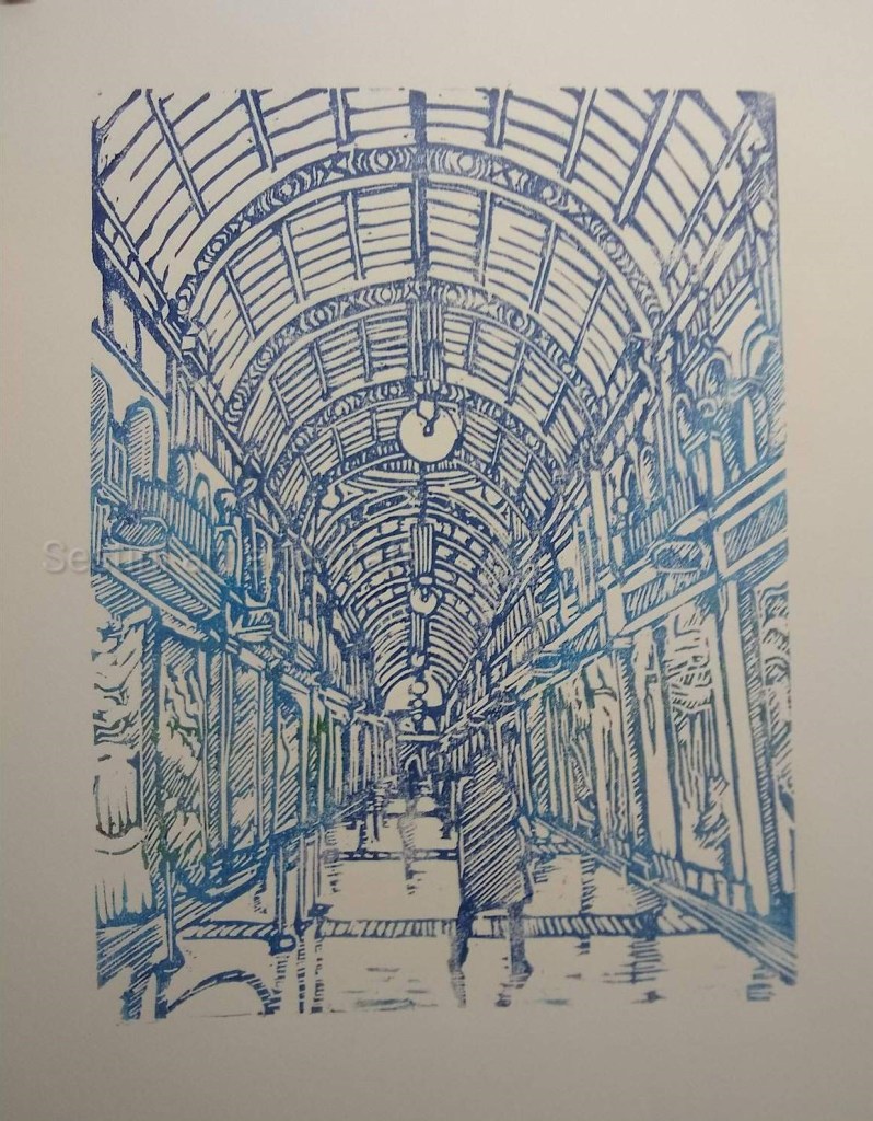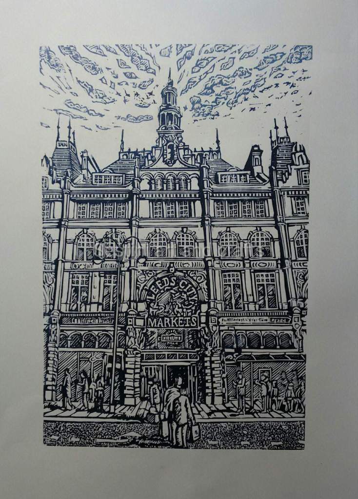 Leeds Kirkgate Market single block with selective inked Printed on Gerstaecker 120 gsm archival paper. Print size 300X450mm